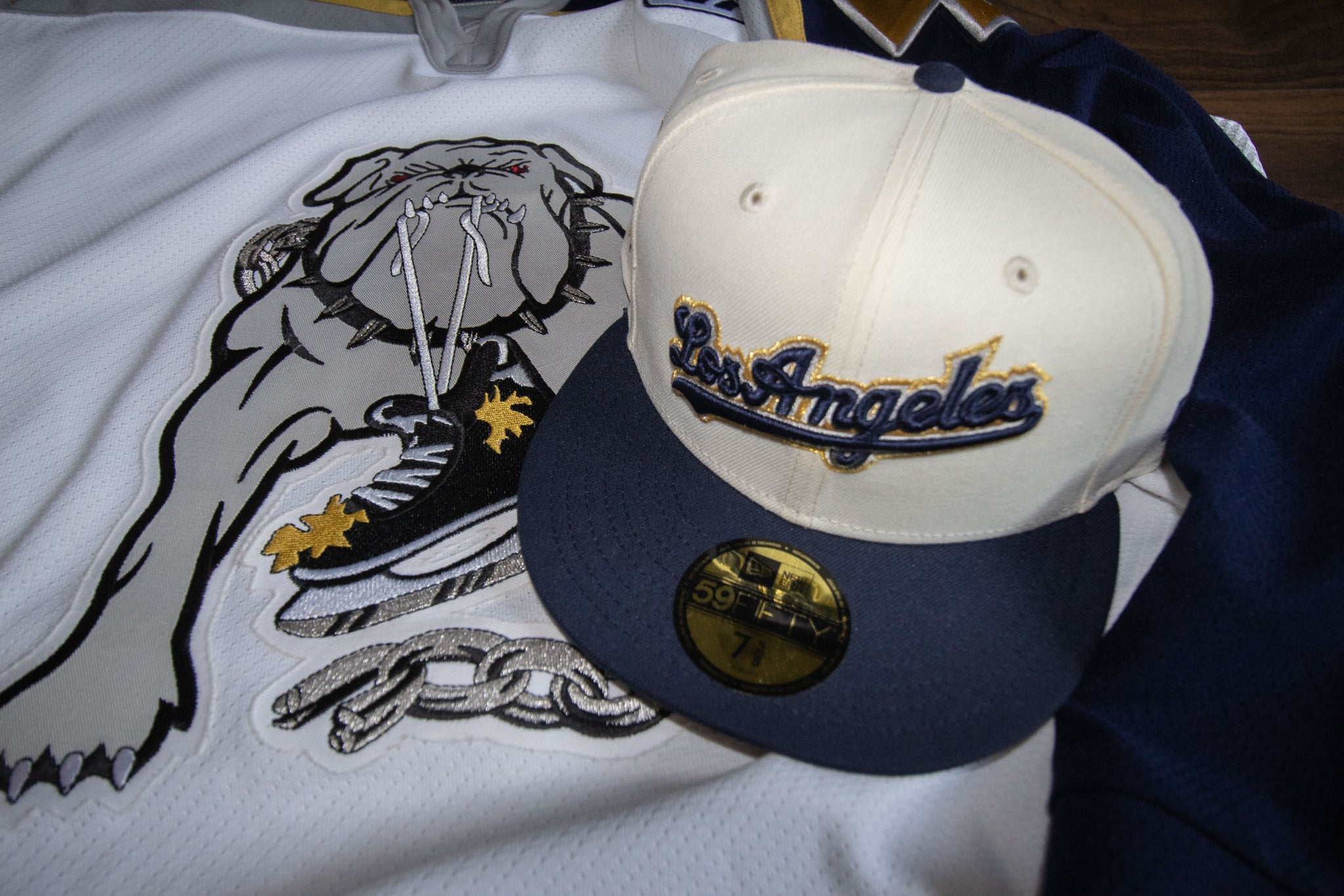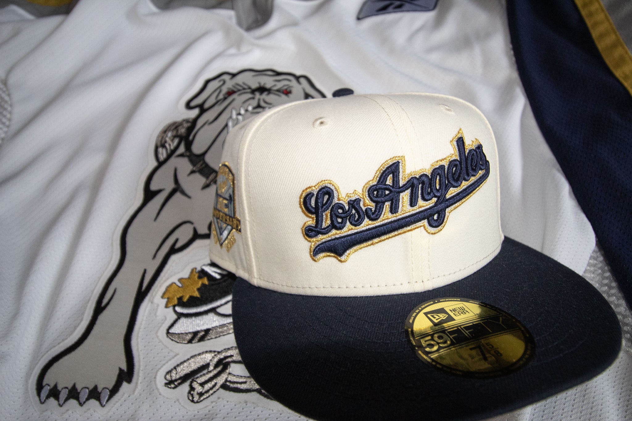 New Era 5950 LA Dodgers Script Ice Dogs in Chrome/Nightshift Navy - 818 Exclusive