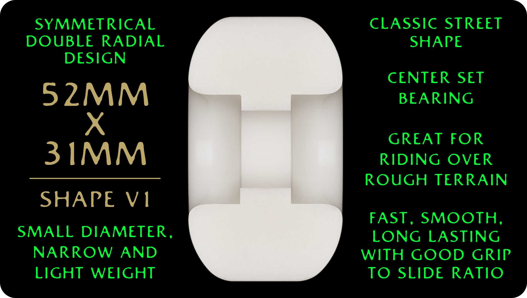 Dragon Formula has taken us a decade of development to perfect. they have amazing speed, a smooth ride, unequalled grip to slide ratio, vibration damping, and extra-long life. this formula is groundbreaking and will make skating more fun and expand the skate terrain available to dragon riders.